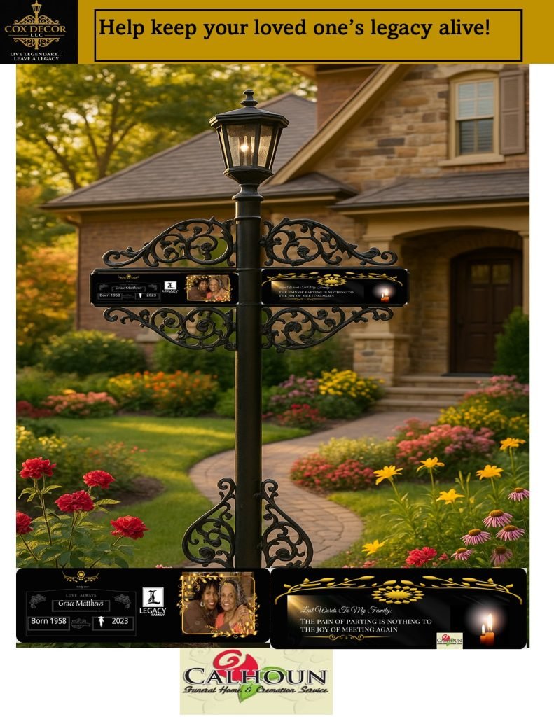 a solution for Cremation & Funeral Homes Directors. CoxDecor Angelic Legacy Post, serves families long after the flowers fade away...